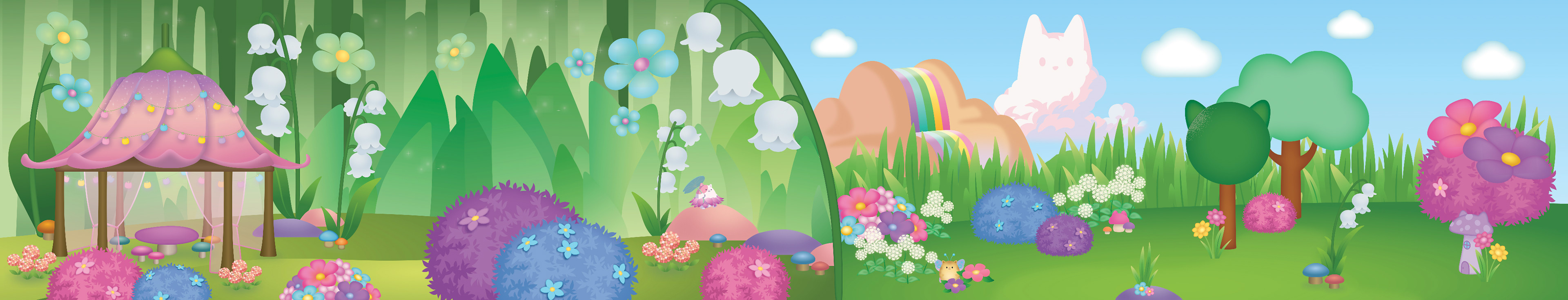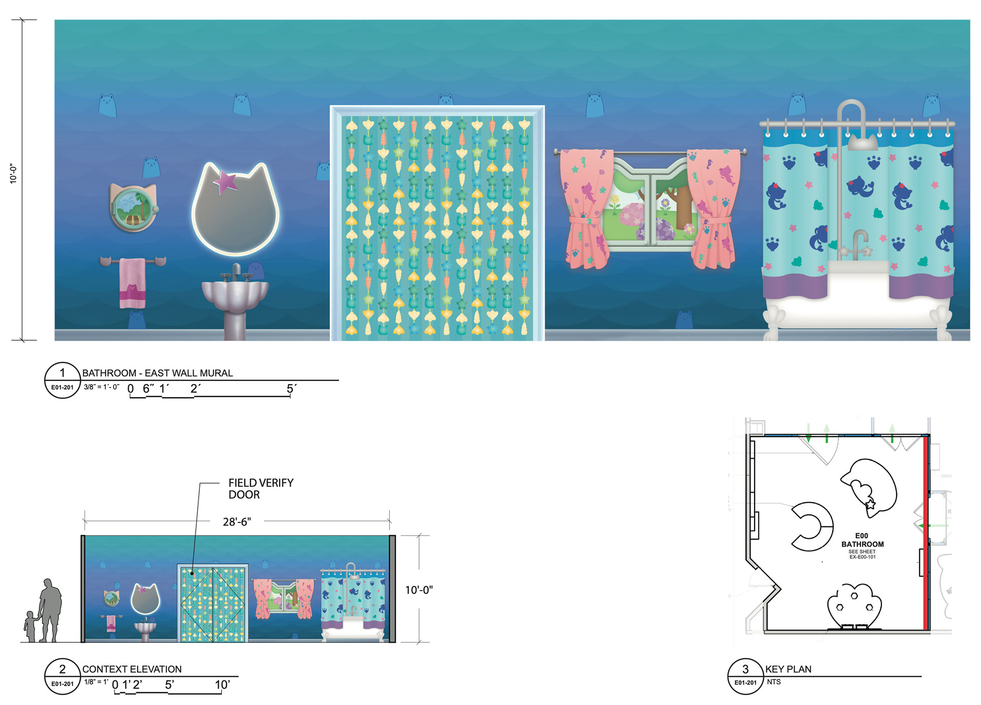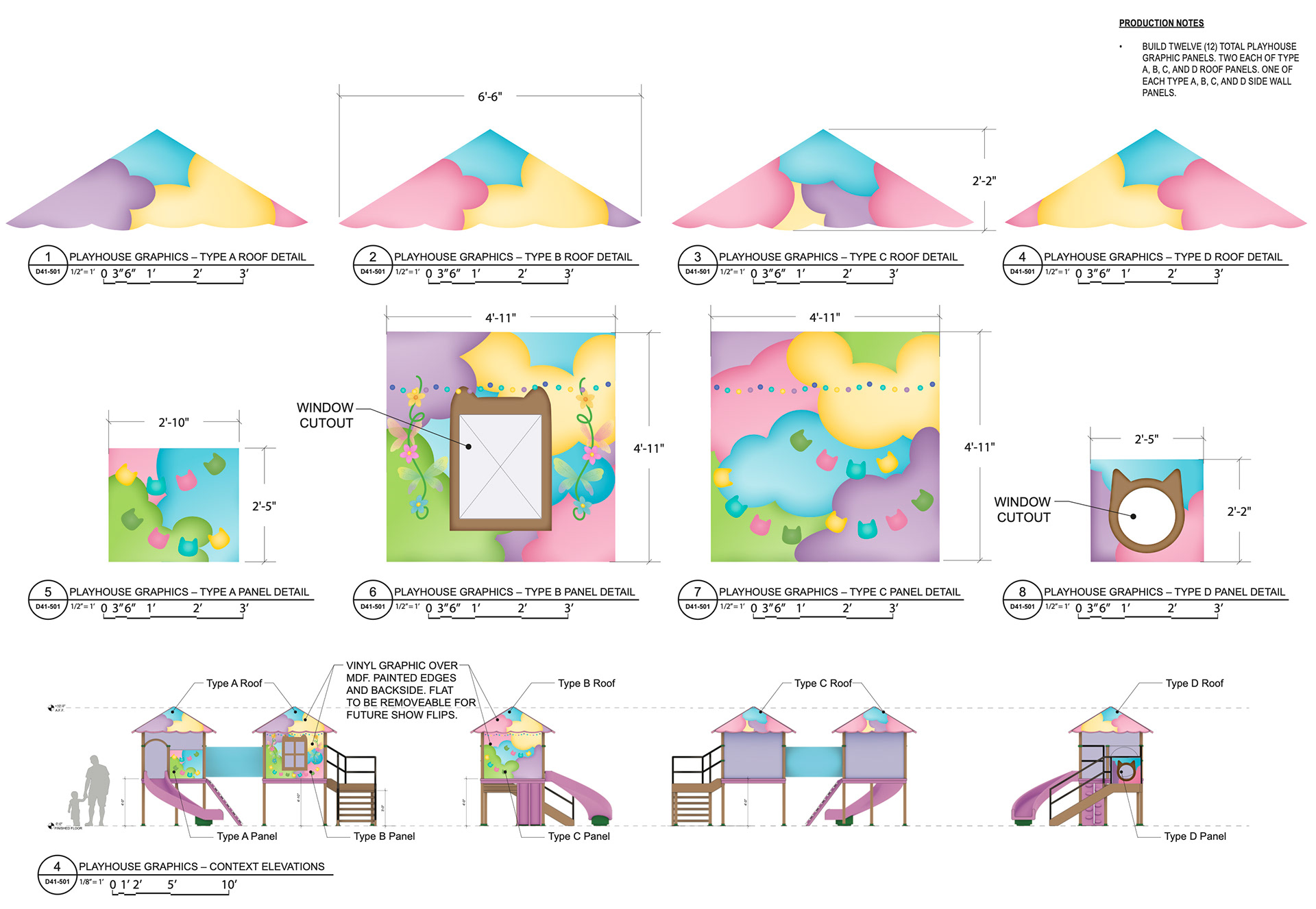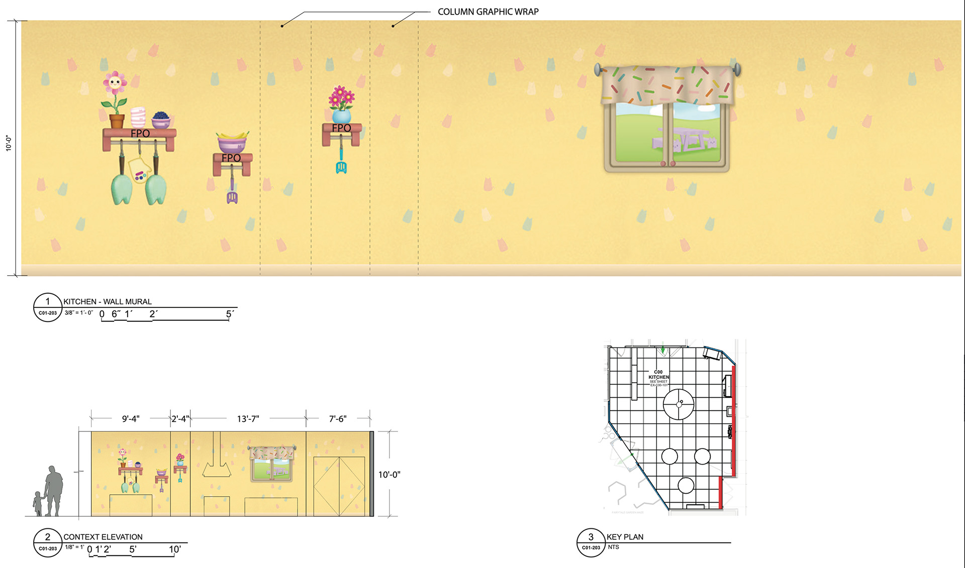 Floor to ceiling printed vinyl graphics to create rooms from Gabby's Dollhouse for kids and families to enjoy in real life. Designed concept through creating print-ready files and design detail sheets.