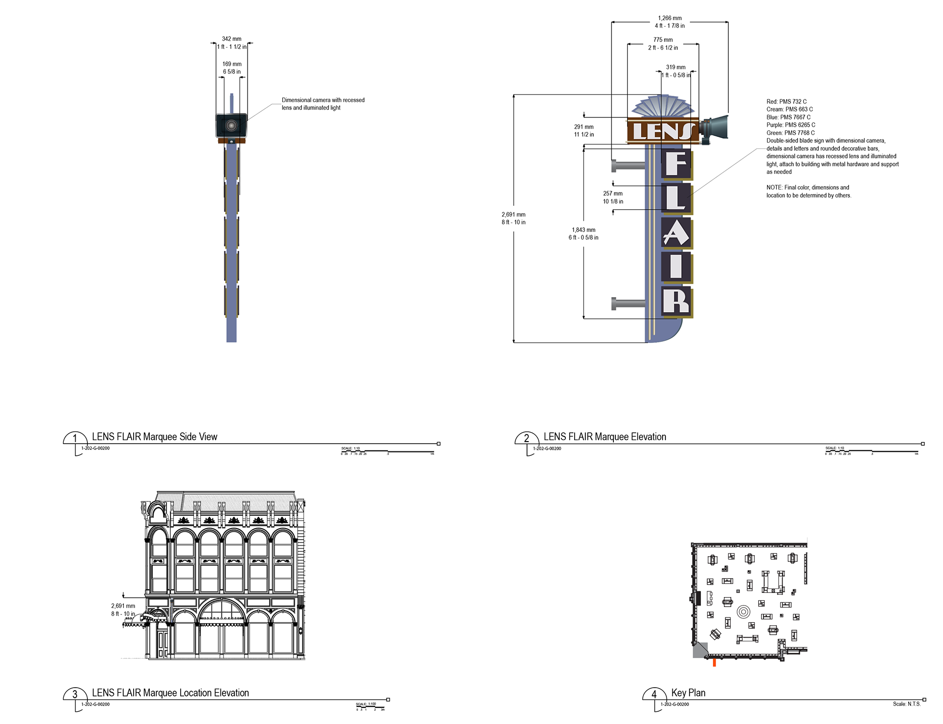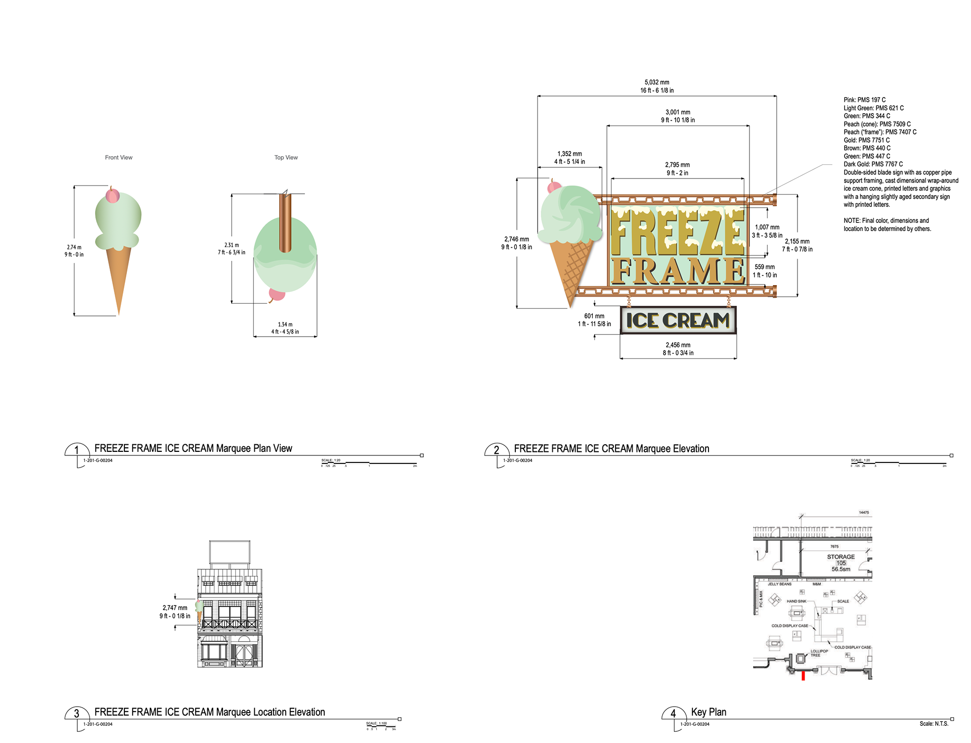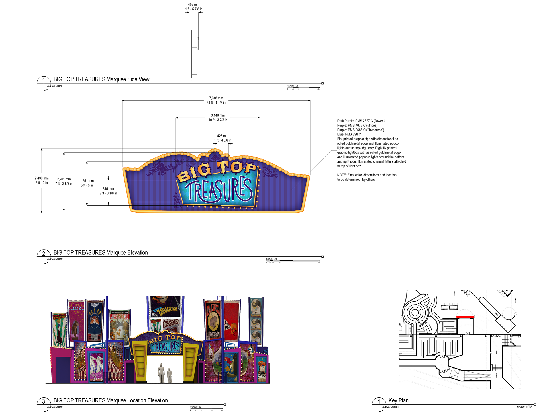 Responsible for the development of theme park-wide schematic design and design development graphics packages for Motiongate Dubai. Development included: research, sketching, design and refinement, page layout, color and materials call outs, basic measurements and plan location for over 150 signs and scenic graphics throughout the theme park.