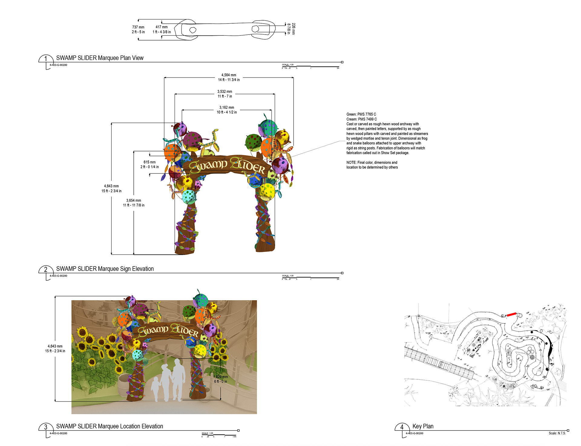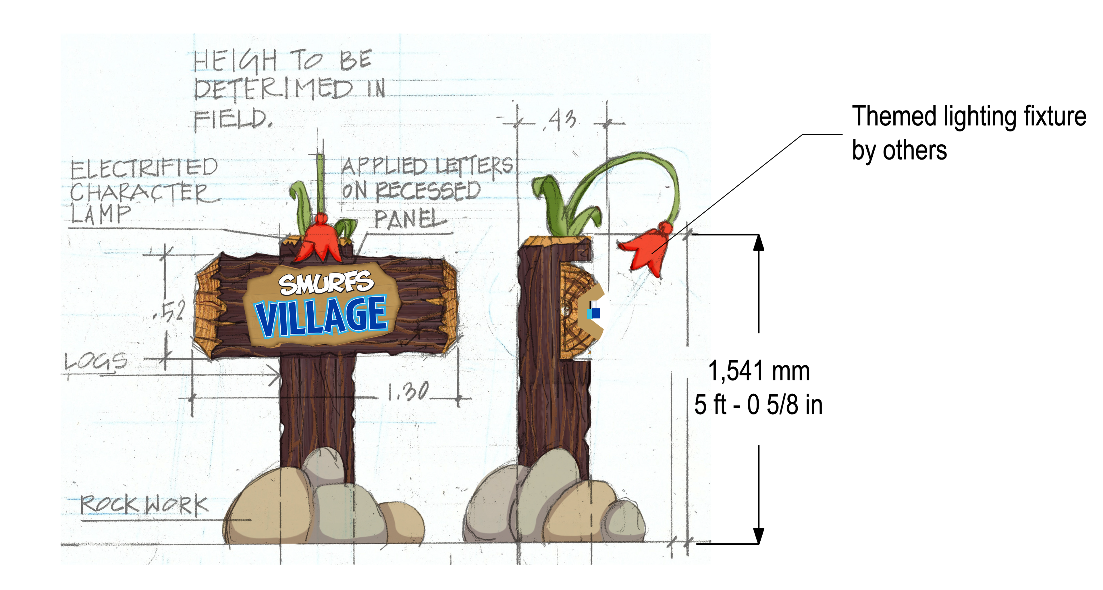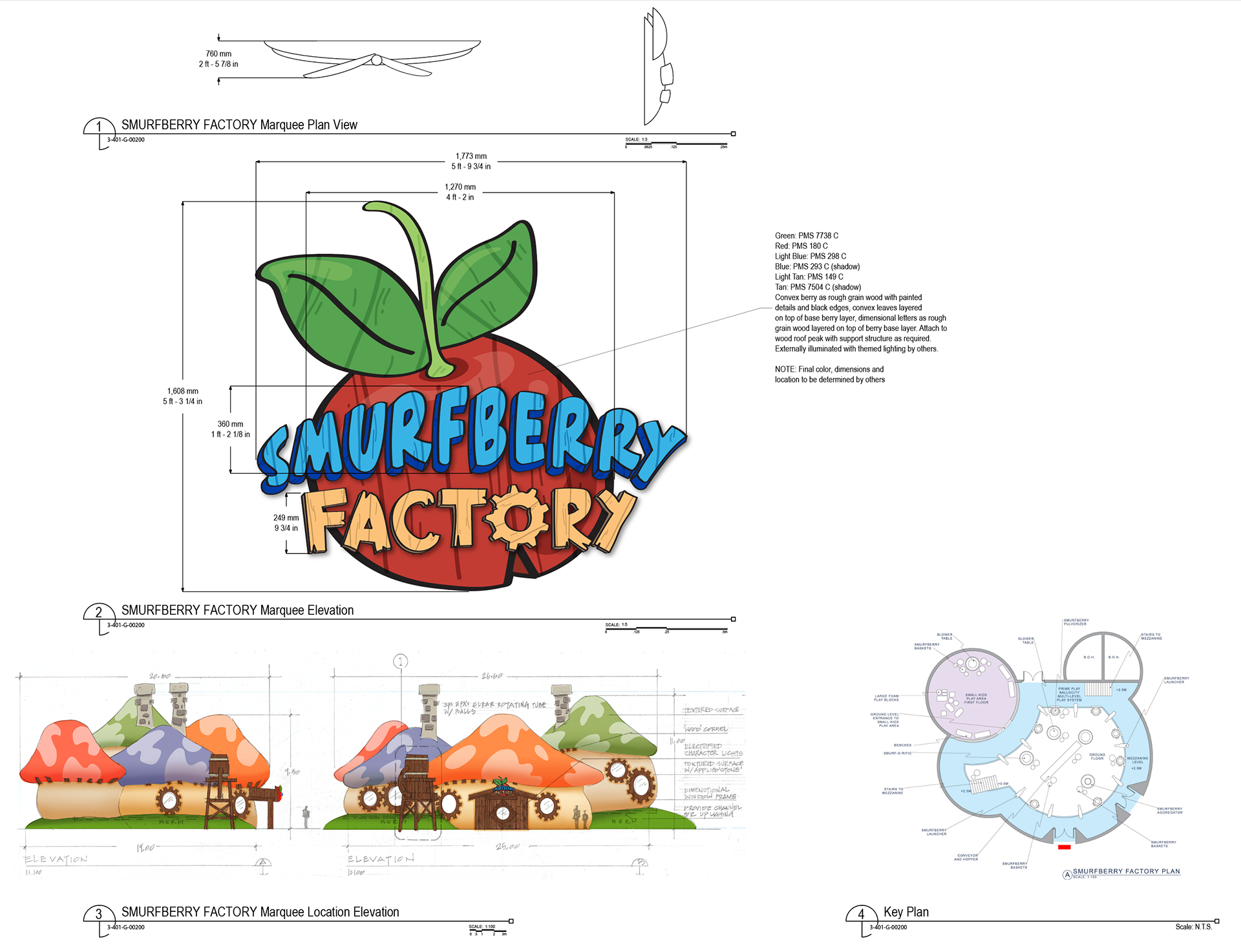 Responsible for all area development, marquees and operational signage and show graphics throughout The Smurfs Village portion of the park.