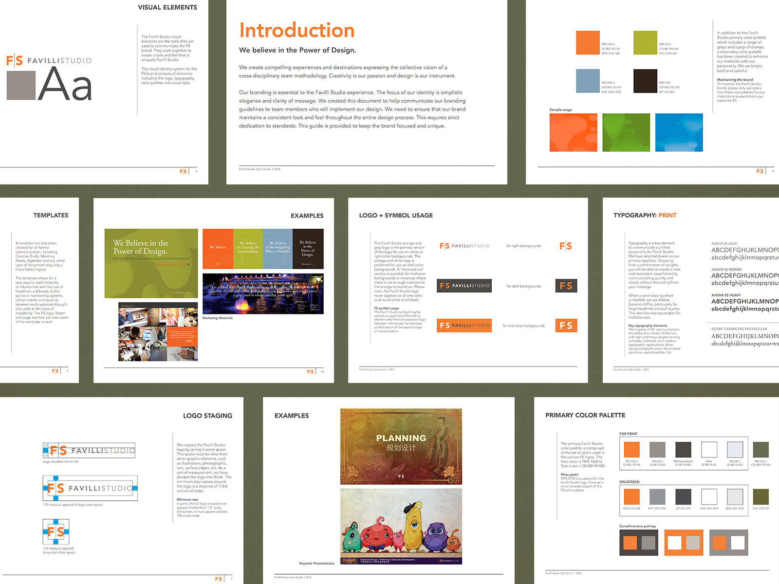 Entertainment design company. Developed overall corporate brand strategy. Created cohesive style guide, minimizing redundancies and conflicting elements. Devised and implemented working assets, allowing designers and freelancers to stay on-brand.
